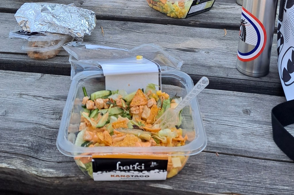 Nyt olemme matkustaneet jo sen verran, että ajelimme lounaalle Ruunaalle. Salaattieväillä! 😎
