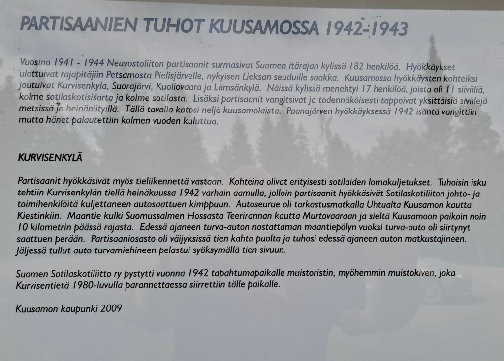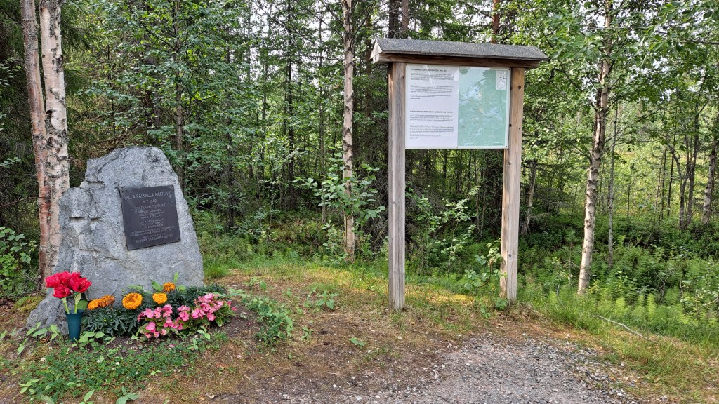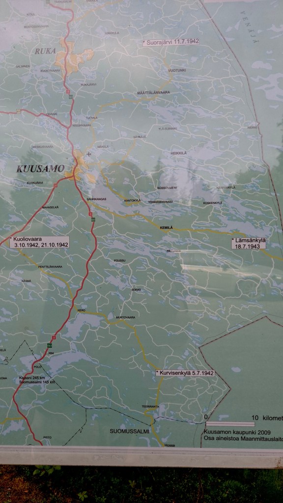 Partisaanien murhaamien muistopaikan kautta kohti Hannu Hautalan luontokuvia ja Rukan majoitusta.