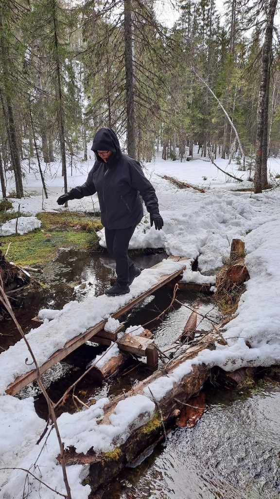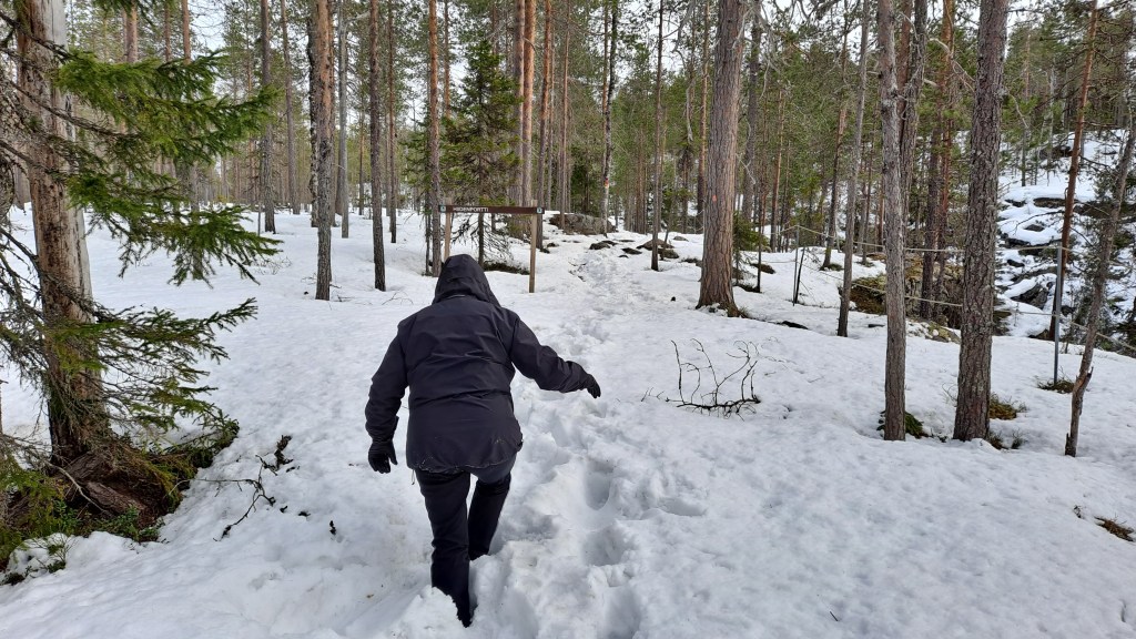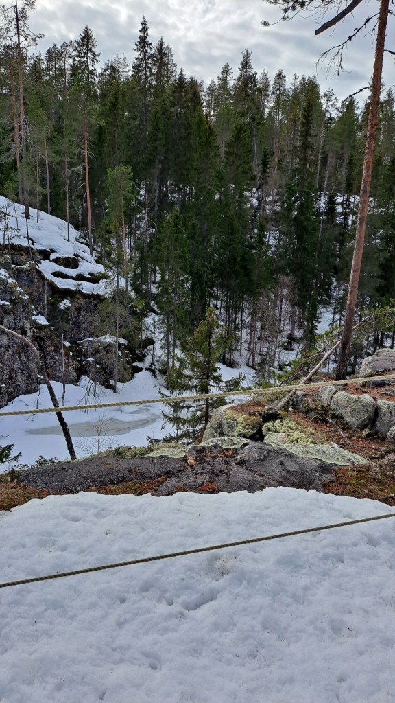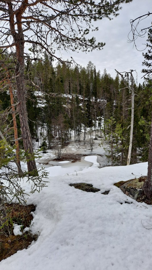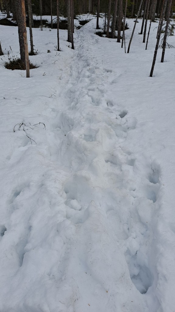 Tiesimme, että kohteessa saattaa vielä olla lunta, mutta emme arvanneet siellä olevan vielä ihan talvi. Pieni lenkki riitti vallan mainiosti ja samalla saatiin sellainen hyvä lihaksia herättänyt nuljuava kuntopiiri. Kuivan kelin uusinta tehdään, kunhan se on mahdollista.