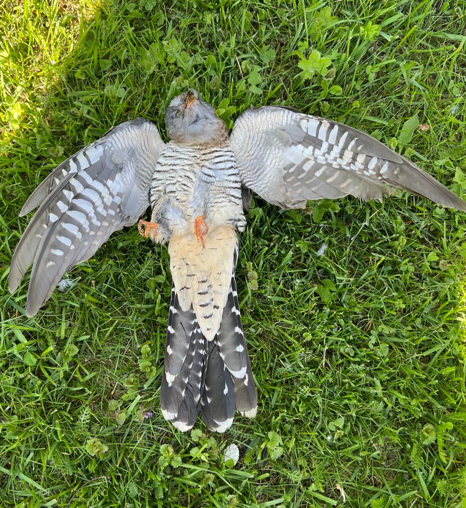 Yläkerran parvekkeelta löytyi ikkunauhri. Valitettavasti. Tämä saattaa olla ihan ensimmäinen kerta, kun tapaan käen ”livenä”.